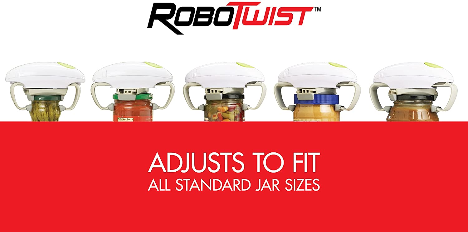 high-quality design makes opening stubborn jars convenient, fun and easy – just position Robotics, adjust, press the Green button, and watch it un-lid tight fitting jars on its own!