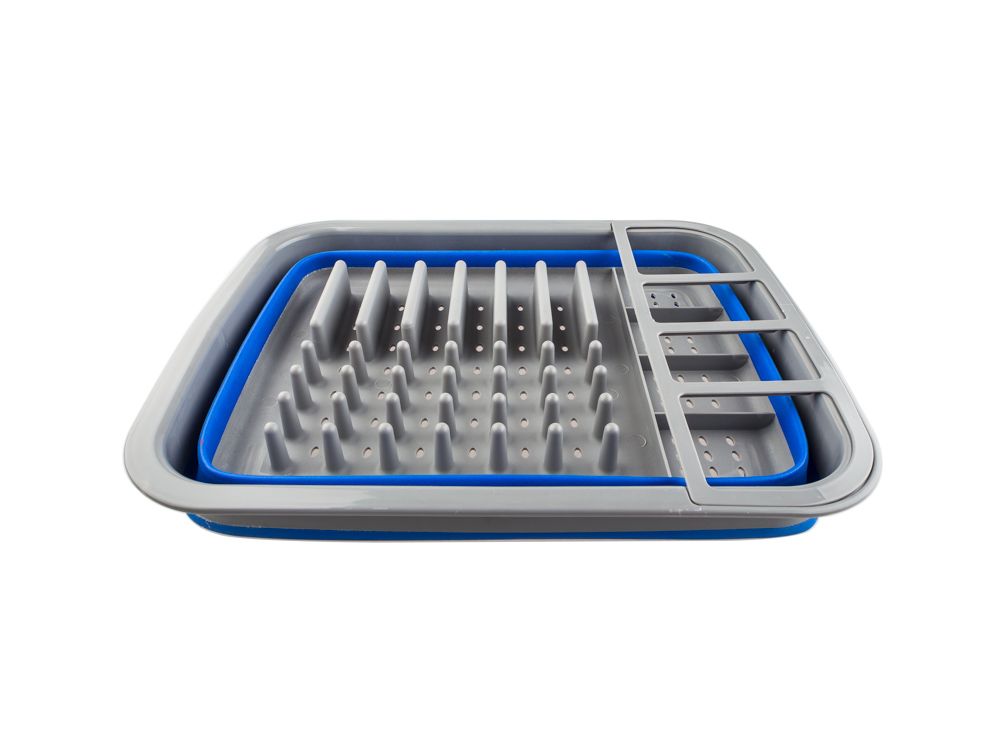 Create more space on your draining board that when not in use easily collapses down perfect for small kitchens or your camp kitchen. Enjoy a tidier wash up area, eliminating that awkward stacked dishes that fall over and require a re-wash. The Adventure Kings Collapsible Dish Rack provides plenty of room to hygienically dry your dishes. Featuring draining holes, base to stand dishes and glassware and a utensil section keeps cutlery upright for quicker drying time.