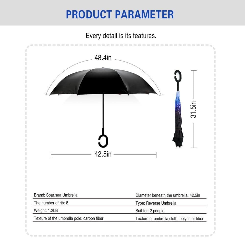 ● Durable Material: The double layer inverted umbrella made of: pongee cloth, durable black electric ribs and double layer ribs make the cars umbrella sturdier, enhance its windproof effect.