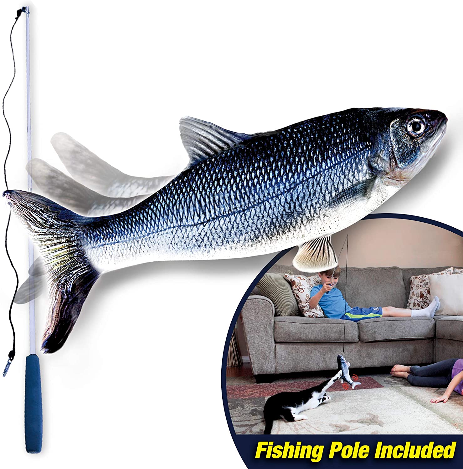 Keep your cat entertained for hours! Flippity fish is the amazingly realistic cat toy that flips, flops and wiggles – just like a real fish! The built-in motion sensor activates when your pet is nearby or touches The toy. The realistic movement helps promote exercise and fun interactive play, which can reduce stress and bad behavior. Best of all, flippity fish is rechargeable and has a refillable pouch for you to add Catnip. Flippity fish is made of durable materials that can withstand even the most excited Feline friends. With flippity fish you can keep your kitty entertained for hours of endless Fun!