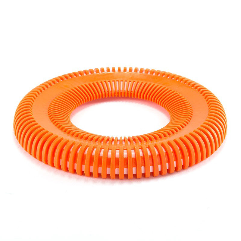 Let your outdoor play sore to new heights with a flying toy that can stand up to just about anything! The unique, rigid core gives the saucer a firm circular shape, and the ridges along the outside protect that inner core from damage. The ridges provide an easy grip for you to throw it high in the air or low to the ground, and they help your dog pick it up and keep a firm grip. Don’t let a little water scare you away, if your dog enjoys retrieving toys in the pool or lake, bring this flying saucer on your next adventure! The toy floats, making it one of the most versatile toys in your collection.