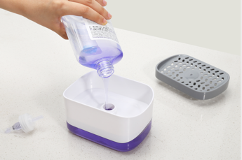 1. Clear window shows pump dispenser contents and lets you know when to refill;