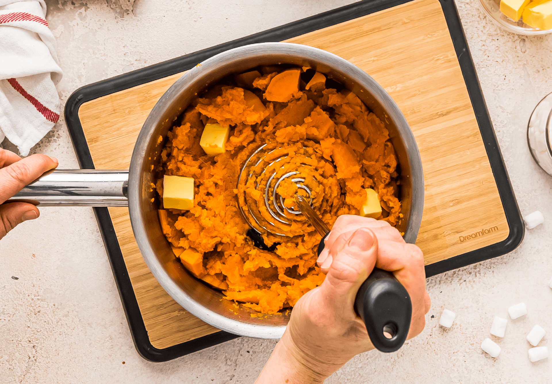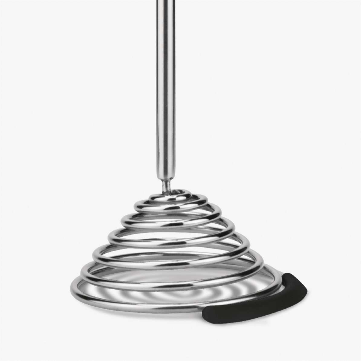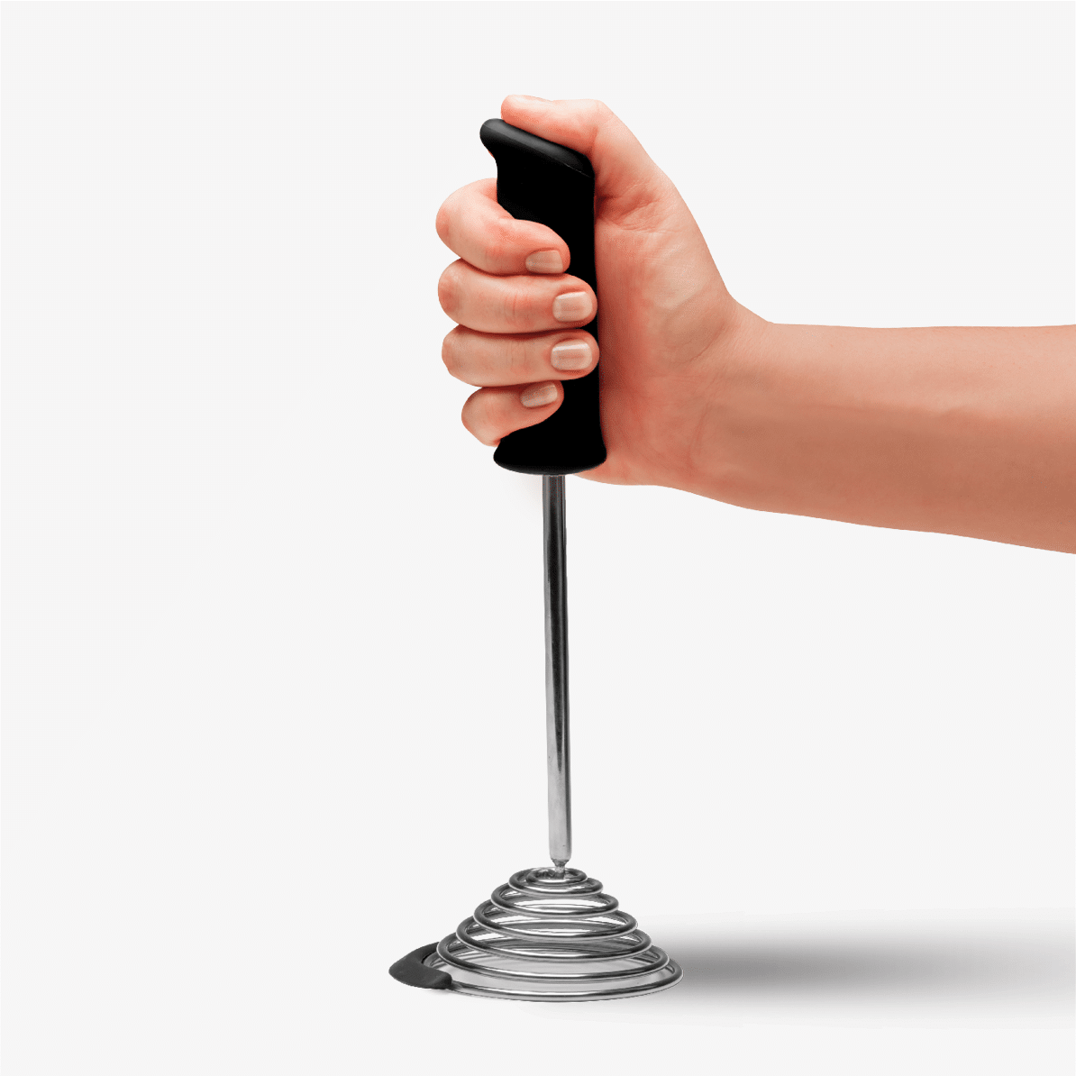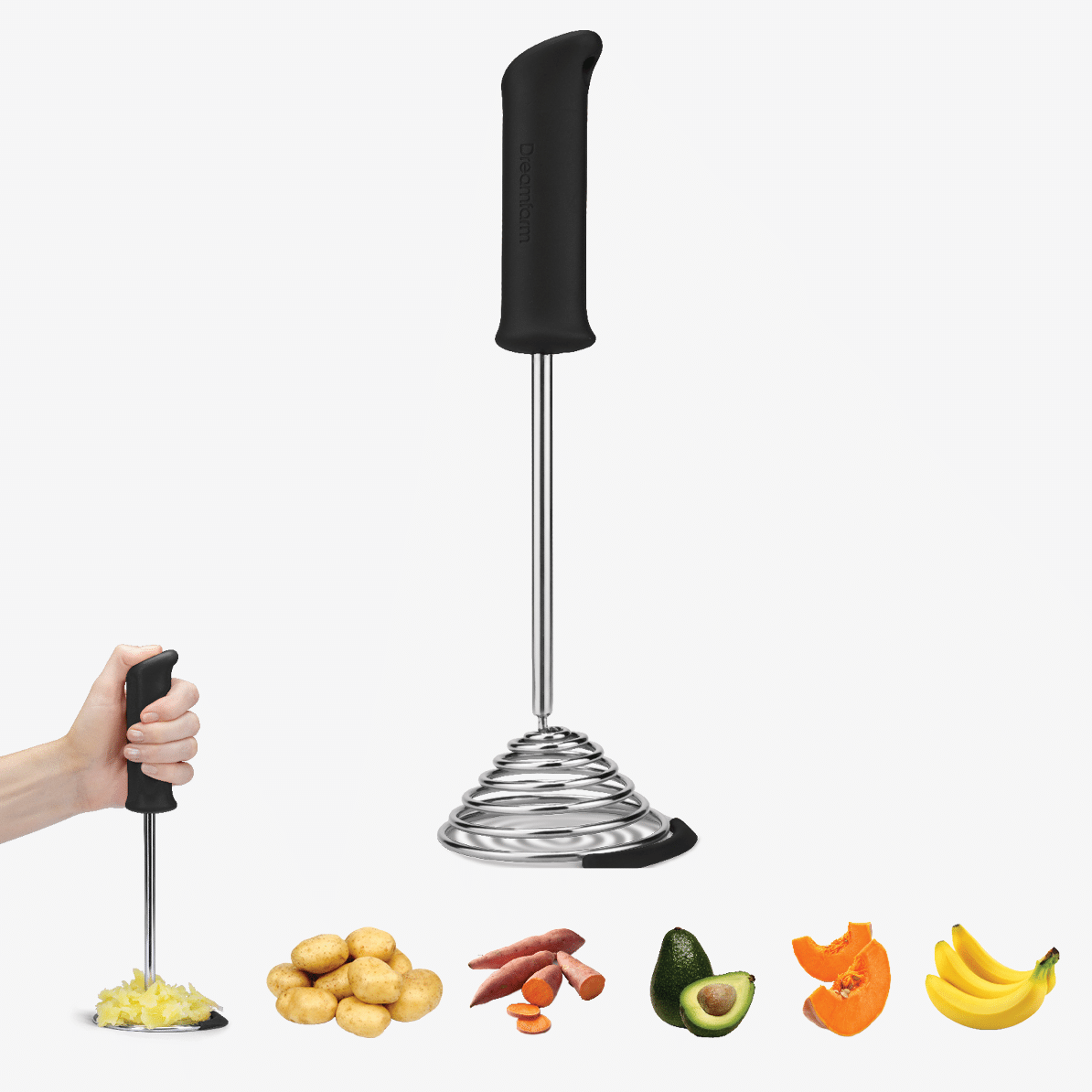 Effortlessly creates smooth mash in seconds by trapping food and forcing it through the thin gaps between the collapsing stainless steel spring coils.