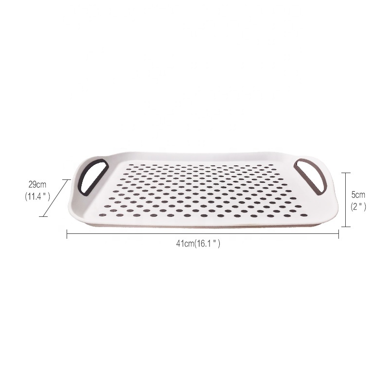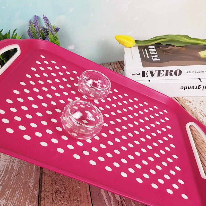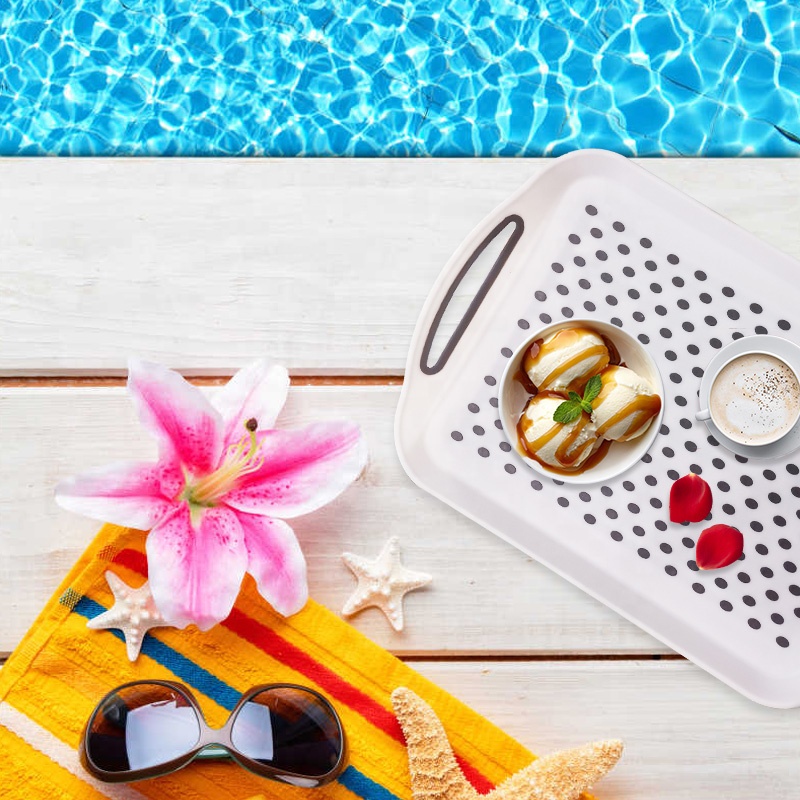 Rectangle non-slip serving tray plastic food tray with handle