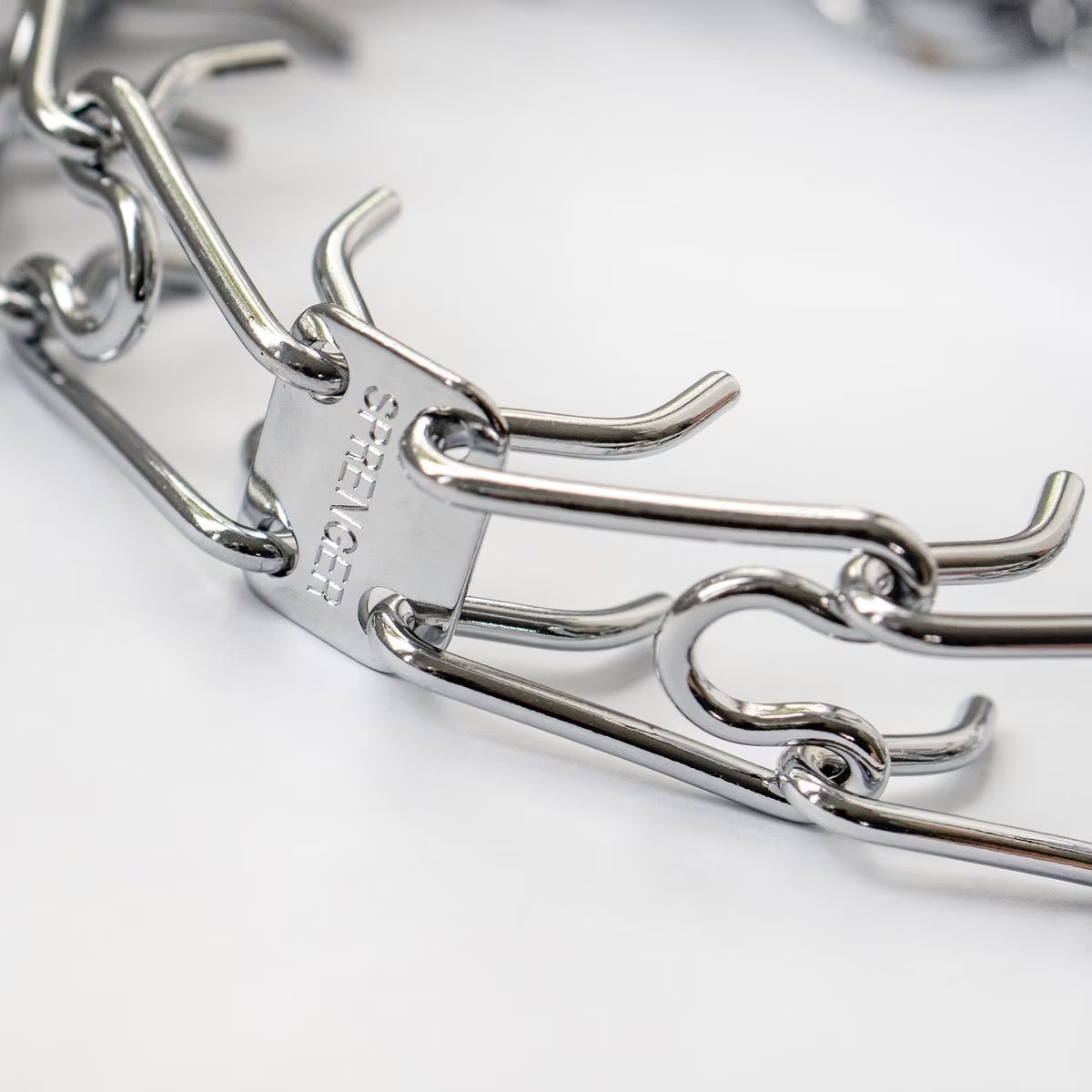 Pet parents, get ready to train your furry friend with the Herm Sprenger Ultra-Plus Training Dog Prong Collar. This paw-some tool is safe, practical, and easy to use for effective training. It features a solid fastener plate that creates a secure connection, making it easier and safer to fasten around your pup’s neck. You can also adjust the size by adding or removing individual links. The patented center plate construction and symmetrical prong placement provide natural contact for optimal communication between you and your four-legged friend. This collar is great for walking strong pullers, large dogs and for obedience training and behavior correction. To determine the right size for your pup, simply add four inches to their neck measurement. And if he needs a larger size, replacement links are available (sold separately). Get ready to train your pup like a pro with this paw-some collar.