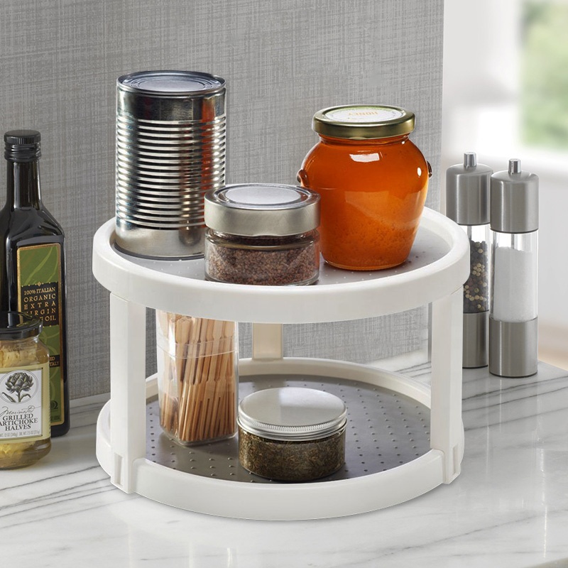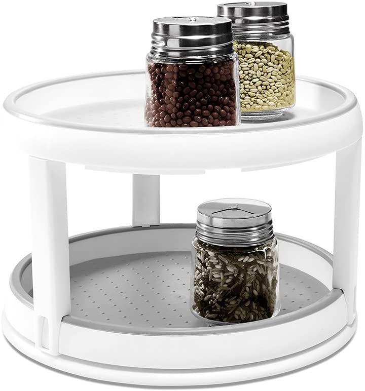Twin Turntable CABINET COLLECTION 2-Levels Non-slip Lining Wide Base 2Tier Turntable 360-degree Tray Rotating Organizer Non Skid